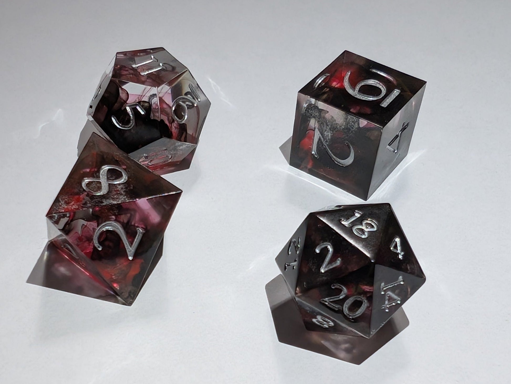 These handmade resin dice are perfect for Dungeons & Dragons or any tabletop RPG. Carefully crafted with vibrant colors, swirling patterns, and polished finishes, each set offers a unique and appealing look. Whether you're a seasoned adventurer or just starting your journey, these unique dice add a touch of magic to every session. Choose your favorite design and let the dice decide your fate!